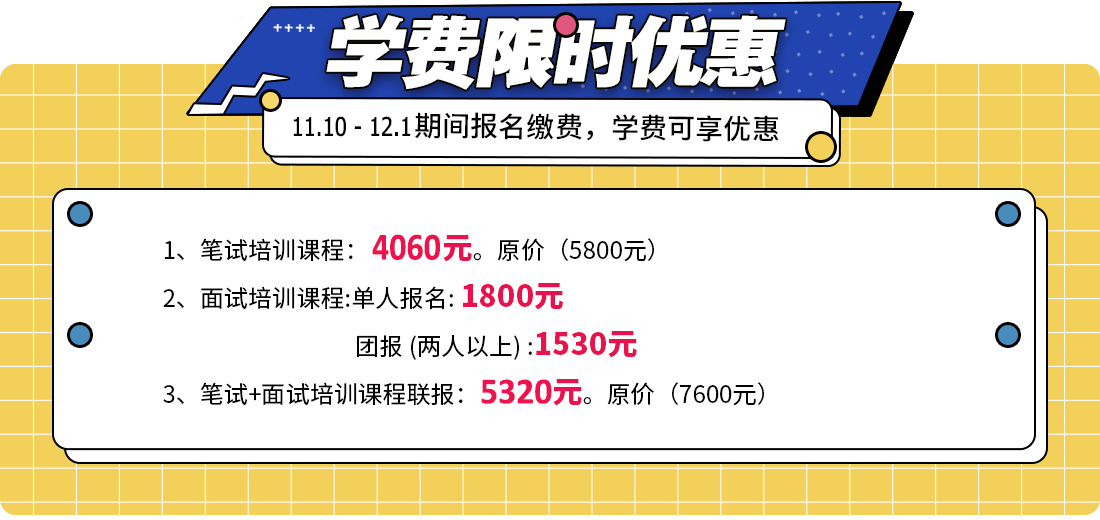 3 笔试和面试课程联报可享八五折优惠,折后6460元/人。